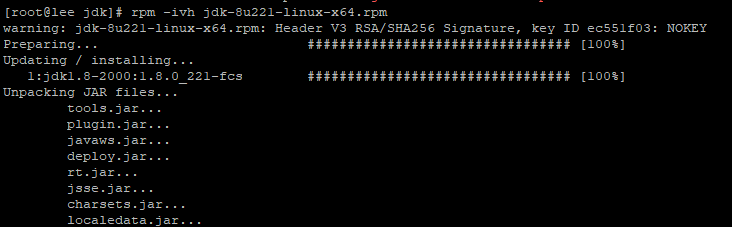 - 명령어 : rpm -ivh jdk-8u221-linux-x64.rpm